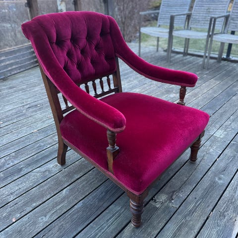 Flott Chaiselongue i originalstoff. Denne er som NY selv om den er ifra 40 tallet. Du finner garantert ikke maken . Jeg kan transportere den hjem til deg i Bergensområdet gratis vist ønskelig. Bredde =130 cm . ( Utslått ) Lengde = 190 cm . Ps . Kan byttes i gammel jukebox i samme prisklasse .