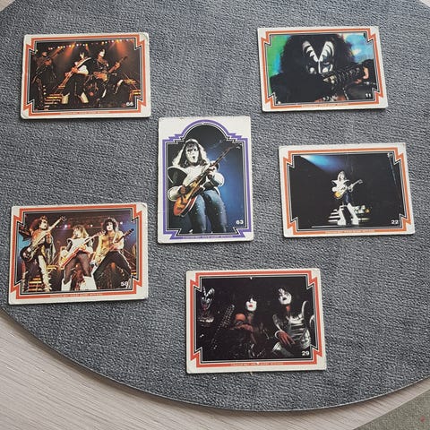 5. Div kort selges eller byttes. Eric Carr Promo Kort fra 2000 for 2001 release of Studio Chikara's Eric Carr Commemorative Set , 2 ulike 1991 Ace Frehley Brockum Rockcards og et svarte Peter Criss Kortet er #42 fra 1978 Donruss Rock Stars