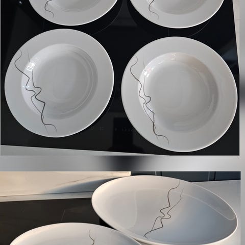 Dekorativt teservise i hvitt polsk porselen type WANEL med gulldekor, kanne, liten mugge, sukkerskål og 10 kopper og skåler selges høstbydende