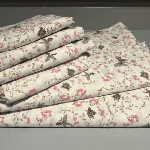 Fine putetrekk i friske farger. Ensfargede rosa og blomstret hvite. Passer til avlange puter, halve størrelsen av vanlige puter. 2 stk av hver farge