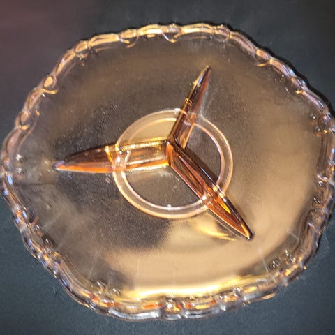 Pressglass.Rosa glass. Brunt glass.Retro ca.60 tallet.Glassmugge m/glass