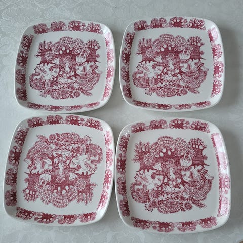 Kabarefat. 7 rom. Egersund. 41x29 cm. 3 små avskallinger på noen rom.