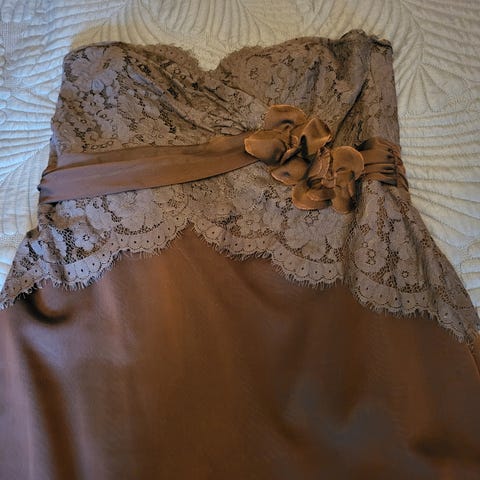 Dette er en utrolig fin mørkebrun kjole av Karina Kjenner Titze. Norsk designer. Kostet opprinnelig 5 500. Brukt 2 ganger. Størrelse Large. Selges da den ikke lenger passer.