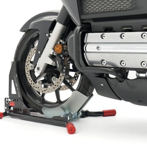 Med Acebikes SteadyStand får du motorsykkeln på plass og armene fri til å sikre den otimalt på bare noen sekunder selv om du ikke har noen til å hjelpe deg!