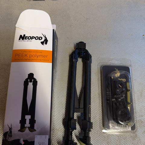 NeoPod er verdens letteste tofot. Den veier kun 82 gram og er laget avkarbonforsterket PEEK polymer, det mest avanserte materialet på markedet. Den lave vekten gjør den spesielt godt egnet for fjelljakt hvor hvert gram teller i ryggsekken.