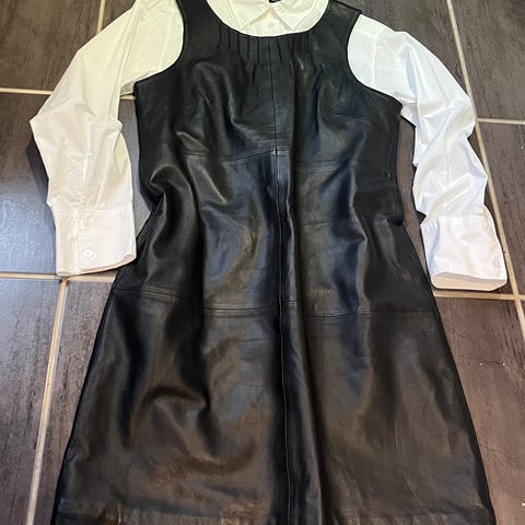 Fantastisk lekker skinn kjole grå/dus lavendel gråblå. Str 38. 100 % lammeskinn. Foret innvendig. Utrolig mykt og behagelig skinn.
