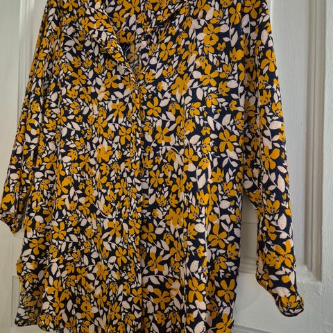 Glatt stoff, rysjer foran, nydelig til både skjørt og bukse og under blazer. 3/4 erm.