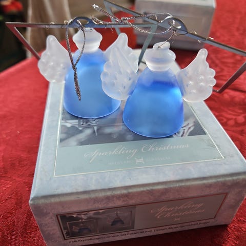 Vindusdekorasjon i glass. "Til minne". Julepynt. Nydelig gjenstand. Diam. 7,7 cm. Tykkelsen på det tykkeste ca. 1 cm. Den smalner utover.
