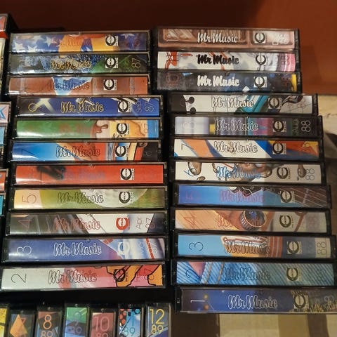 Ca. 70 stk. originale kassetter med 1990-talls musikk, rock ,pop og techno selges enkeltvis eller samlet til høystbydende.