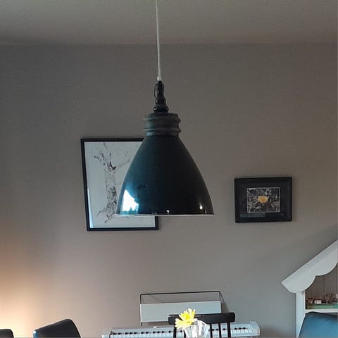 Robust taklampe i sølvfarget messing selges rimelig :)