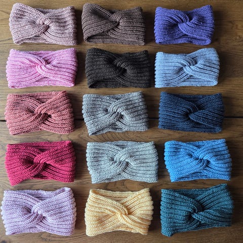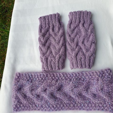 Lue i lilla pusegarn på bestilling.