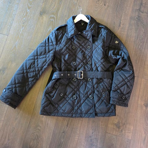 1. Klassisk vest fra Ralph Lauren.Sort med mønster i beige/brun og lilla. Glidelås og lommer med skinn detalj med logo. Lilla innside/for og kan brukes på begge sider. Vattert.2 lommer utenpå og 2 lommer inni. Bomull utenpå og polyester inni.Str XL. Kjøpt hos RL i Usa.Ny og ubrukt men uten prislapp.