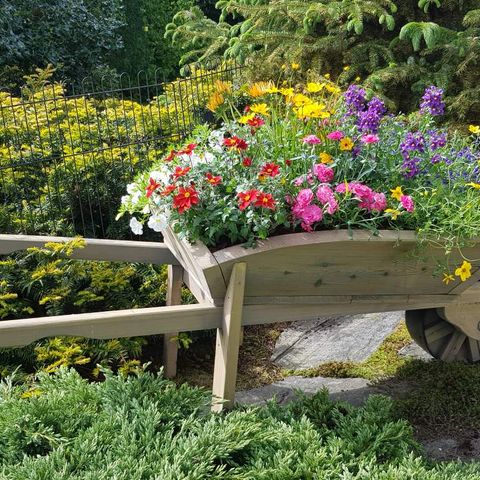 Trillebår i tre - blomsterkasse