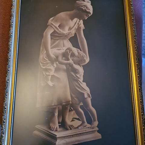 Bildet er jevnt falmet i fargene ( se bilde), men det er veldig pent.(se bilde) Det har hengt på veggen frem til nå.