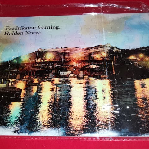 Kartet er utgitt av Halden turistkontor i 1986, og viser på den ene siden av kartet Fredriksten festning og omland, med en liste over kjente punkter på festningen, og navngir også butikker og kontorer på Sydsiden av Halden sentrum.