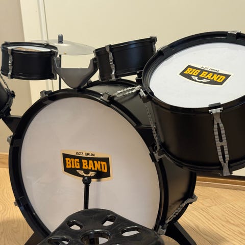 5 trommer i sett til barn. Barn elsker musikk. Med et trommesett vil de kunne ha det mye gøy og lære samtidig.