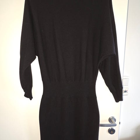 Svart/hvit kjole med mønster. Nydelig fasong, tettsittende med litt strech. Kort modell, str. S