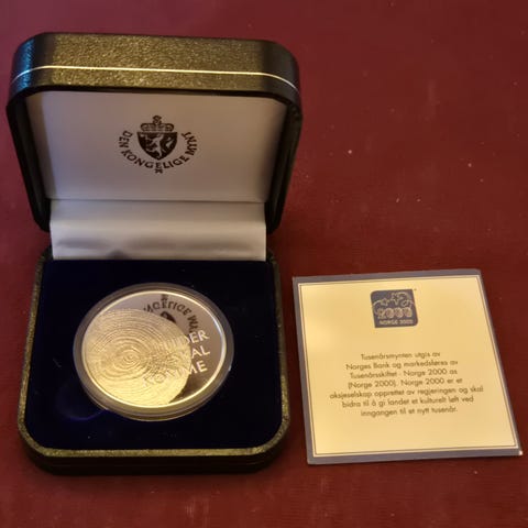 1 oz tusenårsmynten i sølv -100 kr. Proof
