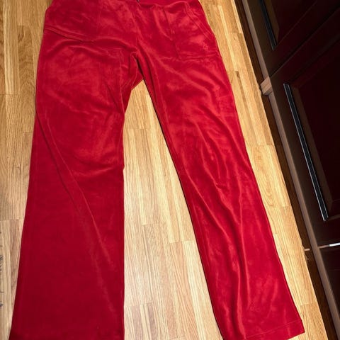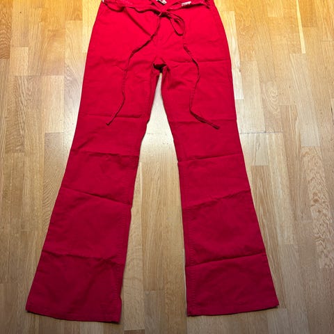 Knallrød fleecebukse fra Ellos.