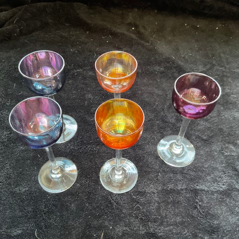 Portvin - sherryglass i forskjellige farger. ( 4 Stk ) Dette er Amerikansk arvegods . H. 17 cm . Kun 500.- . Free shipping . Ready to ship !