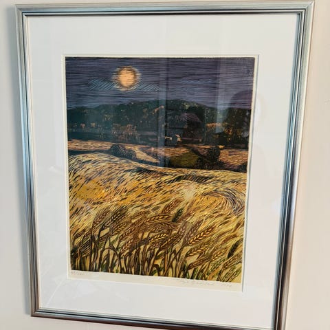 Ferdig innrammet med glass og ramme, selges kr 2.900,-.