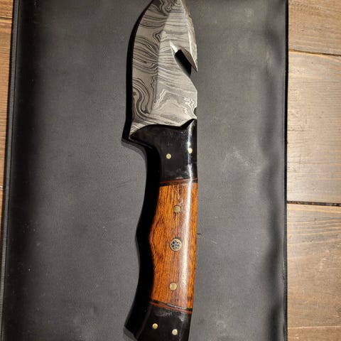 Steinhardt, tykt knivblad av Damaskus-stål.