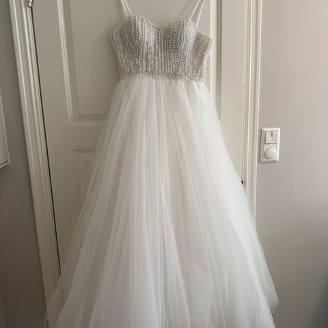 "Just for you" brudekjole str. 34/36 selges. En enkel og elegant kjole kjøpt ny hos Karis brudesalong på Bryne. Ta kontakt om du ønsker å ta en titt på den :)