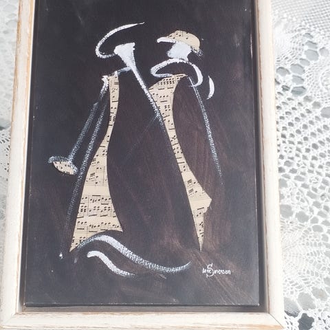 "Lysbærere" Avrylmaleri med sølvbelagt ramme i tre , rammet inn på galleri Grimstad 52 x 62 cm