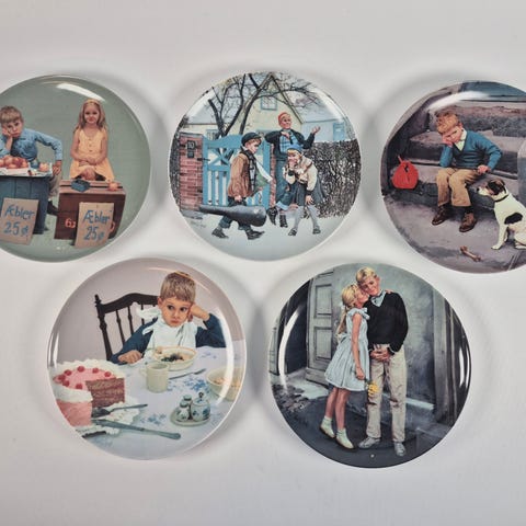 6 danske kunstplatter. Malt av kunstner Kurt Ard. "Livets realiteter". Ligger i original esker, ikke brukt eller hengt på veggen. Kan evt hentes på Hamar