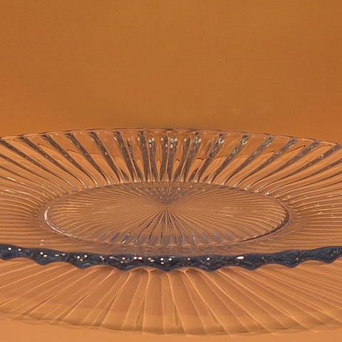 Pent gammelt ravfarget pressglass fat i som ny tilstand selges. Skjelden å få med dette mønsteret i kanten. Pakkes sikkert ved sending med posten.