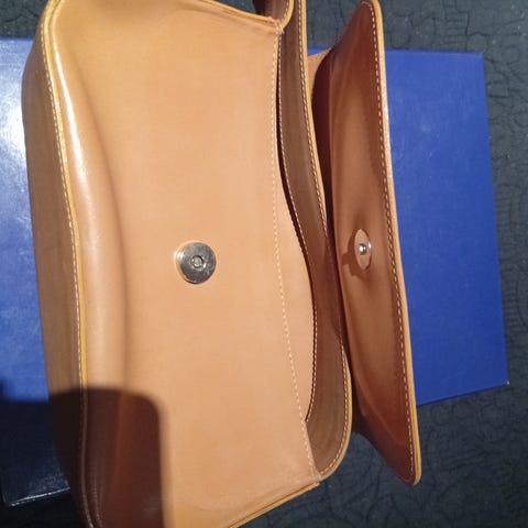 Kan benyttes over skulder hvis man ikke har på seg tykk jakke. Ellers er den perfekt å holde i stroppen. Så god som ny veske kjøpt på Enzo Poli på CC-vest for kr 2500. Selges for kr 500.
