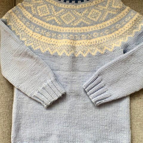 Denne er strikket i ull som kan vaskes i vaskemaskinen.
