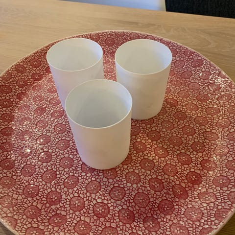 Nye keramiske potter 3stk fra Indiska selges samlet. 100% Keramikk. Sett inkluderer en keramisk Fat og 3 keramiske potter.