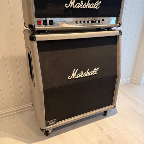 Selger den originale Marshall Silver Jubilee 2555 100w half-stack m/4x12 kabinett med Celestion Vintage 30, 2551AV fra 1987.