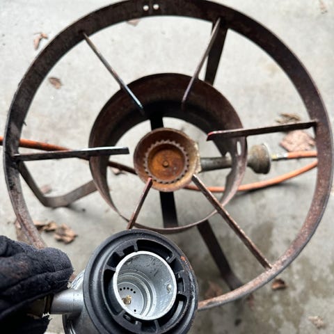 Komplett sett som inneholder gasskoker, stativ, slange/regulator og 40 ltr krabbegryte m/innerrist.