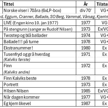 Mange flotte plater, se liste nedenfor.
