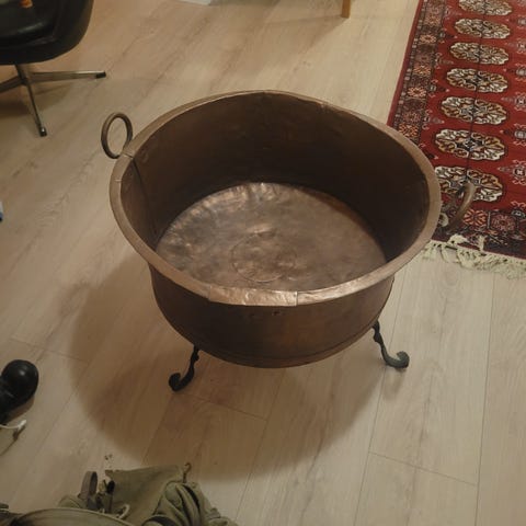 Veldig fin håndlaget kobberdunk til salgs.