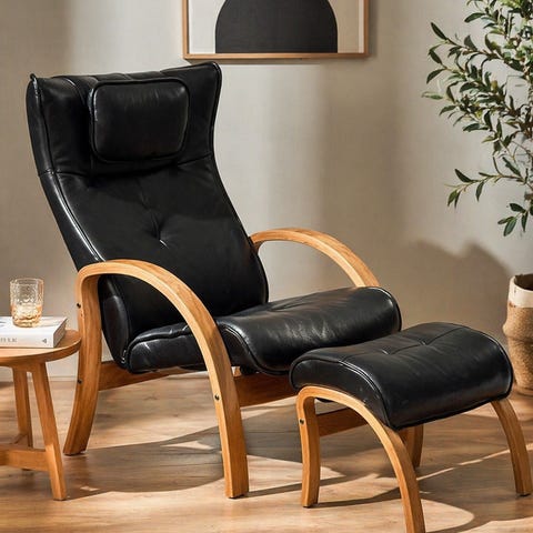 Denne kvalitete kunstskinn lenestolen, med matchende fotskammel, kombinerer stil og funksjonalitet. Settet har en solid treramme, polstret med høy tetthet skum for å maksimere komfort. Det tykke setet og den myke, justerbare ryggstøtten vil gi den ytterste sitteplasser og liggekomfort. Takket være fotkrakken, kan du slappe av og sette føttene opp når du ser på TV eller nyte en lur. Legg et stolsett til ethvert rom for å skape en koselig gjemmested for å lese, se på TV eller bare slappe av. Du kommer til å elske det!