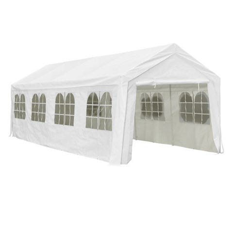 Ramme:Materiale: StålRørdiameter: 38 mmEnkel å montereTeltduk- og sidepaneler:Farge: HvitTeltduk materiale: 160 g / m² PESide panel materiale: 140 g / m² PELeveransen omfatter:2 sider av 6 x 2 m2 Paneler av 12 x 2 m1 takdukEn ramme med staver og tauStoff : Polyetylen: 100%