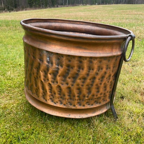 Veddunk i kobber til salgs. Passar til hytte og peis.