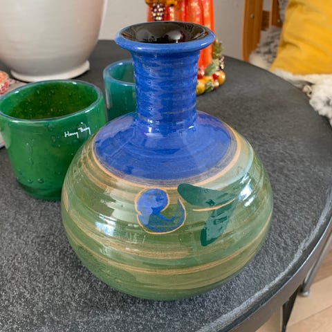 Stor Nydelig håndlaget gulv urne fra Hadeland glassverk.