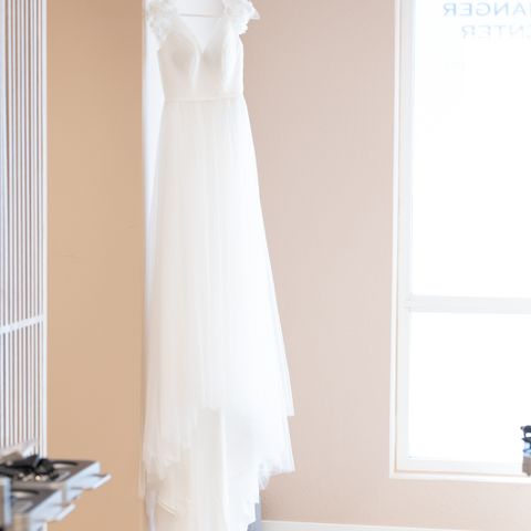 Inkludert i pris følger det med alt av tilbehør som 1 stk underskjørt og slør.