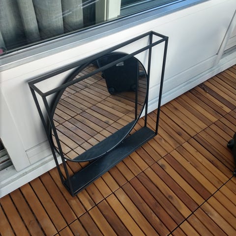 Pent hvitt speil fra Home Art som kan monteres liggende eller stående. Kraftig profilert karm. Noe slitasje karm.