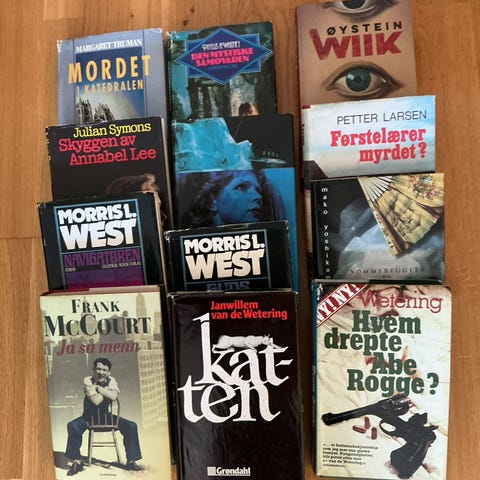 Pent brukte skjønnlitterære bøker selges rimelig. Selges enkeltvis eller samlet for halv pris, kr 200,-.