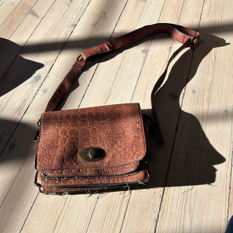 Beige/ brun krokodilleskinnsveske - kort og lang hank - lite slitasje eller bruksspor