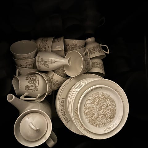 Servise / 6 kuverter i kvalitets porselen med utvalgte Bergstad motiv.