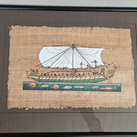 Papyrusbilde bilde av gudinnen Isis selges. Innrammet hos rammemaker.