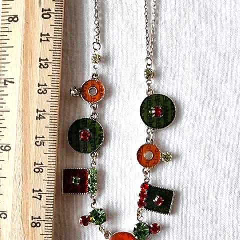Lekker ring i sølv med krystaller i blått og grønt. Pris med porto for sending. Ingen stempel.