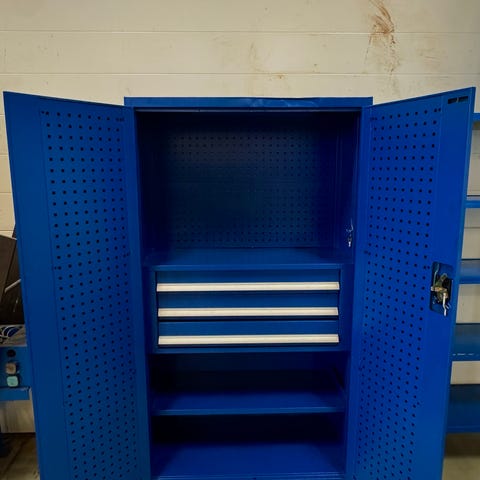 Stålskap / verkstedsskap i blå utførelse som avbildet