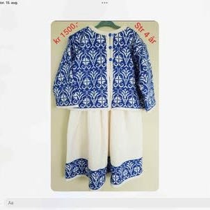 Hjemmestrikket drakt til jente st.4/5år.Strikket av tynt fint ullgarn,krymper ikke i vask. Dette er en fin 17 Mai kjole.